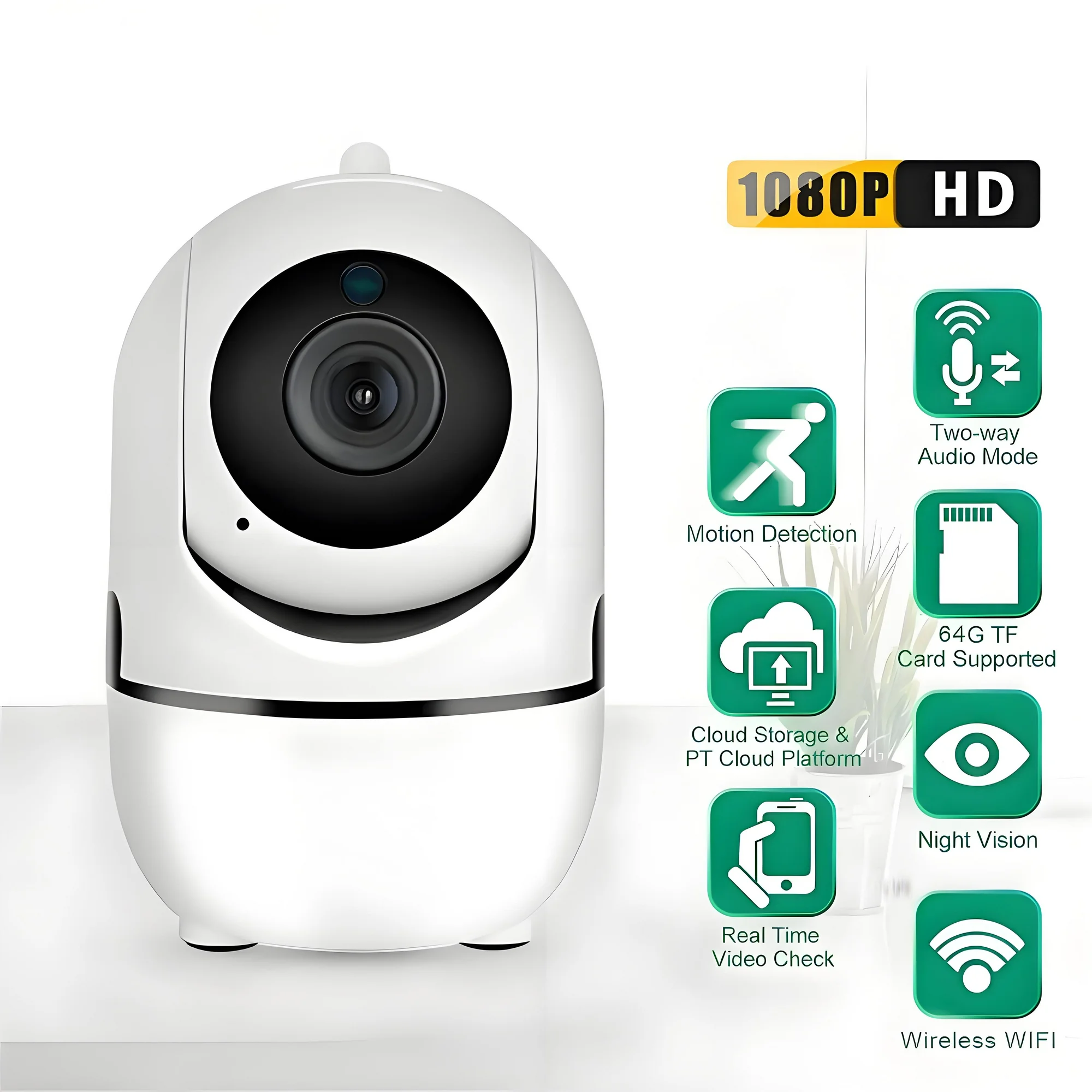 - 1080P HD WiFi IP Camera: With 1080P HD resolution, home camera displays a crystal clear smooth live video, you can keep an eye on your home or baby anytime anywhere. (Note: Only supports 2.4G WiFi, not 5G WiFi.)