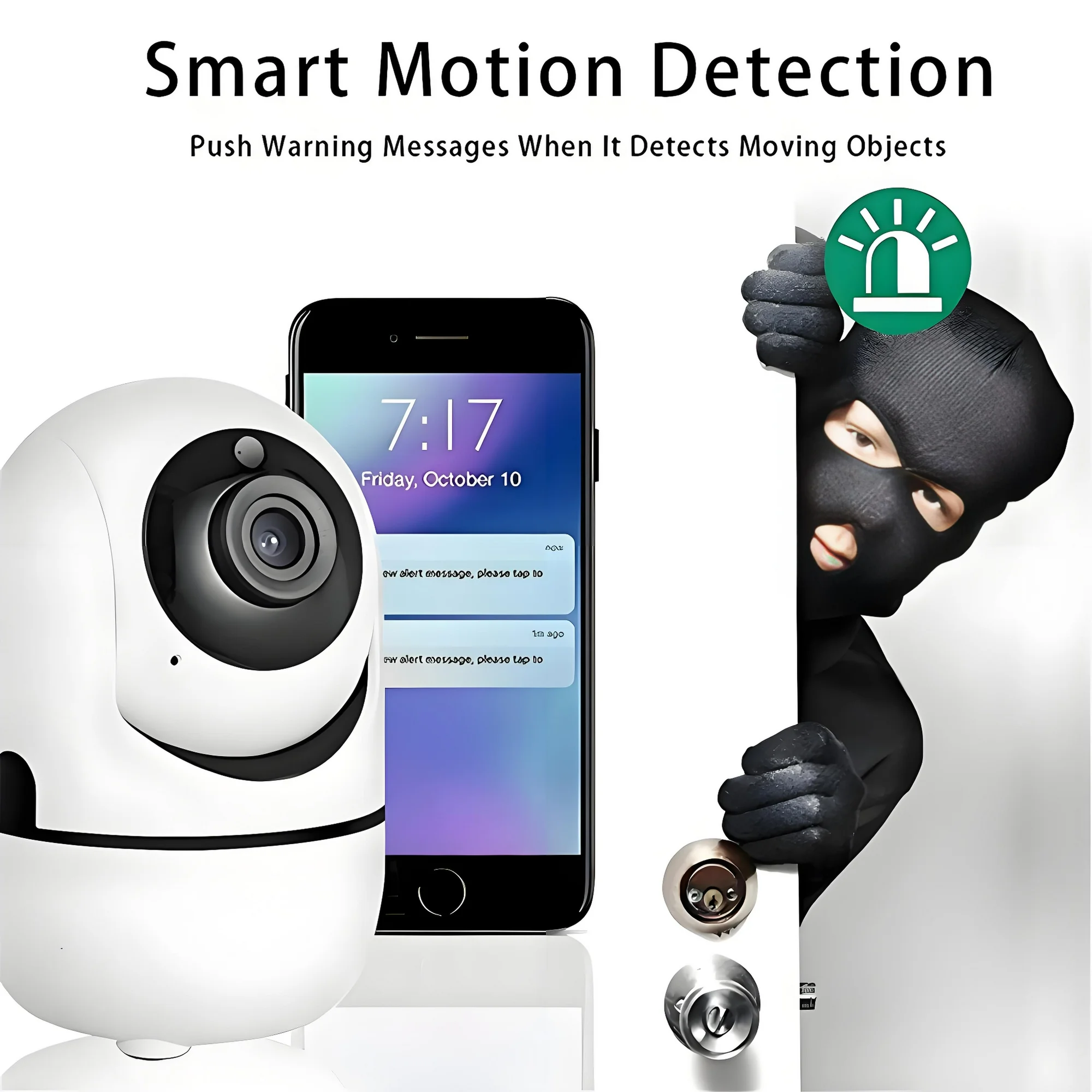 - Real-time Motion Detection Alert: Alert notification and 10s video will be sent to your phone, just open Camera APP to check quickly what is going on, will not miss any important movements.
