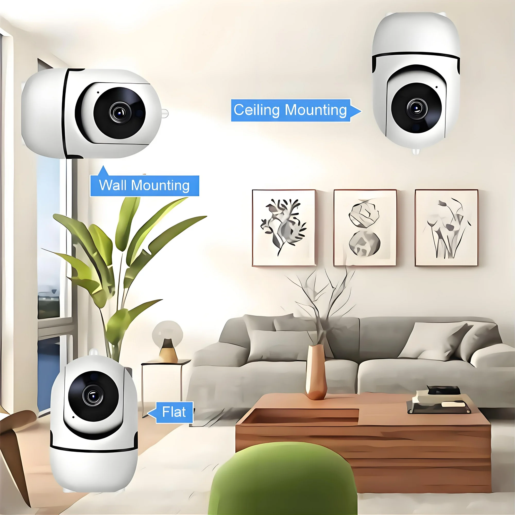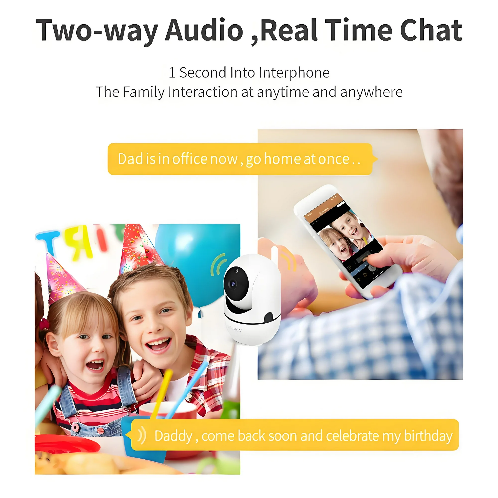 - Two-way Audio Feature: With the two-way audio feature, the home security camera can also be used as a pet camera or an IP camera that allows conversation between the mobile end and the surveillance scene. Have fun interacting with your pet or baby!