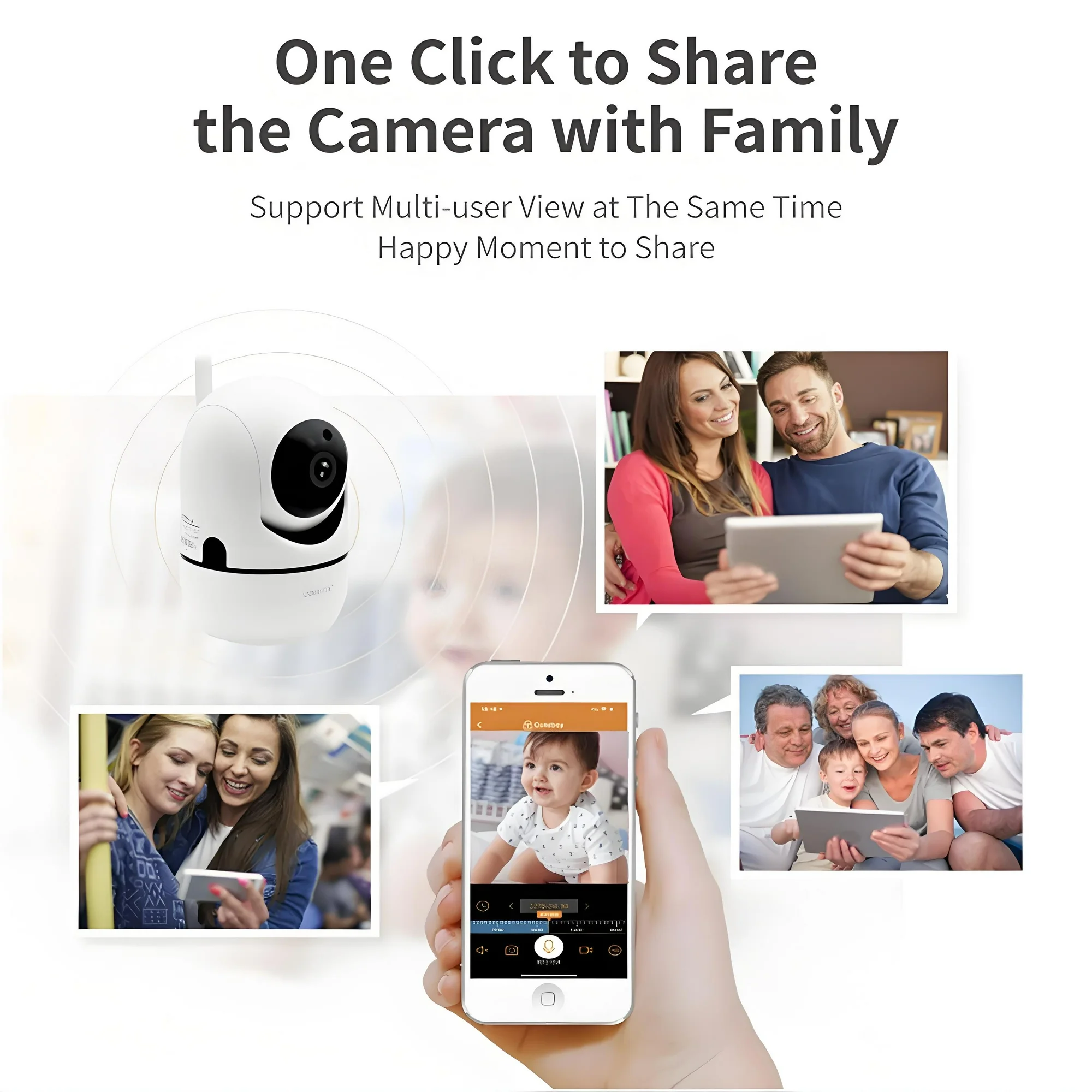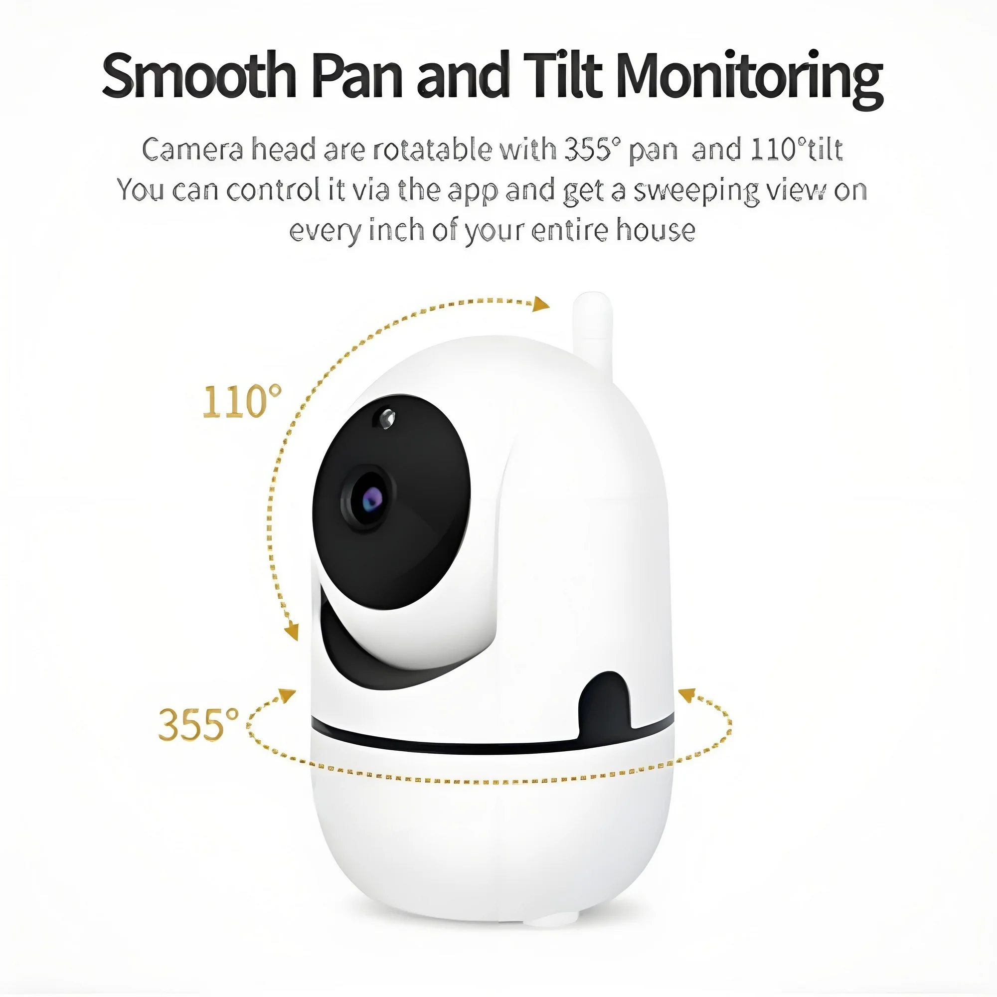 1080P wifi camera for baby monitor support human motion detection,equipped with advanced IR motion detection and smart tracking, which can smart track the activity.This camera for home security can auto rotation with horizontal 360°and vertical 110°, helping you monitor every angle of any room, with no blind spot.With 2K full HD resolution, the baby camera monitor displays a clear smooth live video, making sure you can accurately see what is happening at home. Also wifi security camera built-in noise-proof mic & speaker, so you can clearly hear and talk with your family anywhere