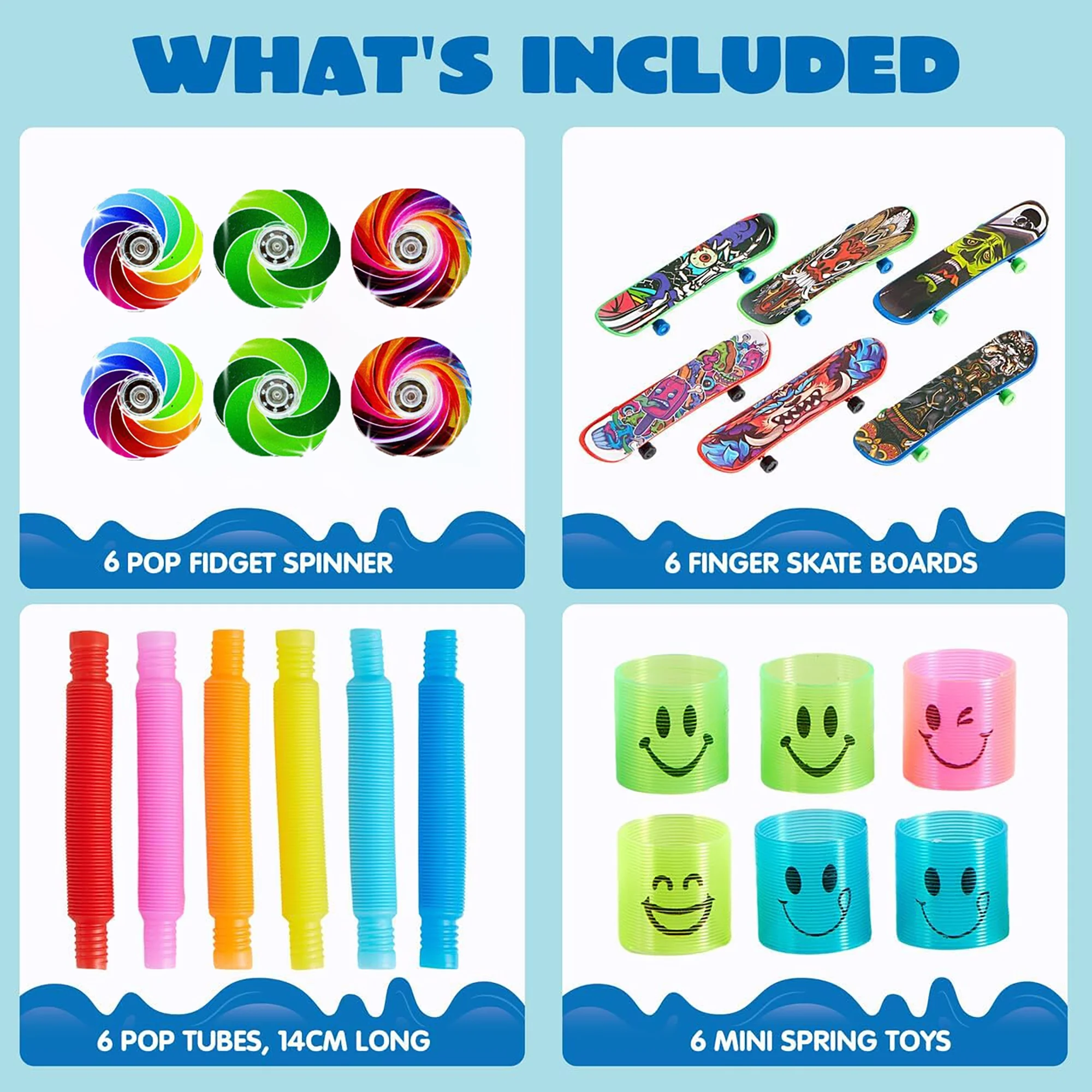 Make any celebration extra fun with this bulk fidget toy party favors set for kids! Perfect for filling birthday goodie bags, pinata stuffers, classroom rewards, and treasure boxes. Includes a variety of popular sensory toys kids love—great for party prizes, school giveaways, and more!