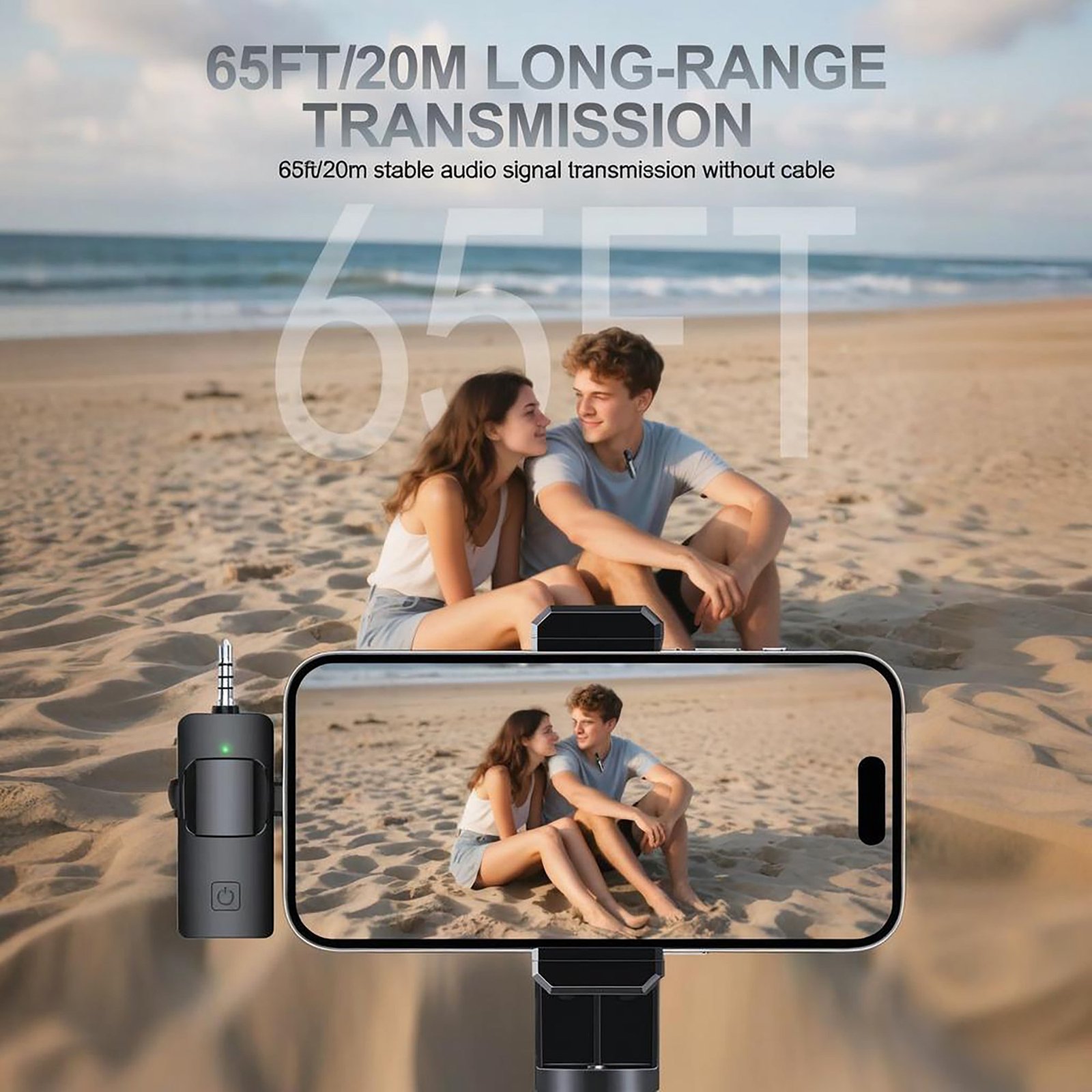 Upgrade your sound with the Sarzi dual wireless microphone system—perfect for content creators, vloggers, educators, and professionals. Enjoy seamless wireless audio with up to 65 ft of transmission range and no tangled wires or Bluetooth pairing required.