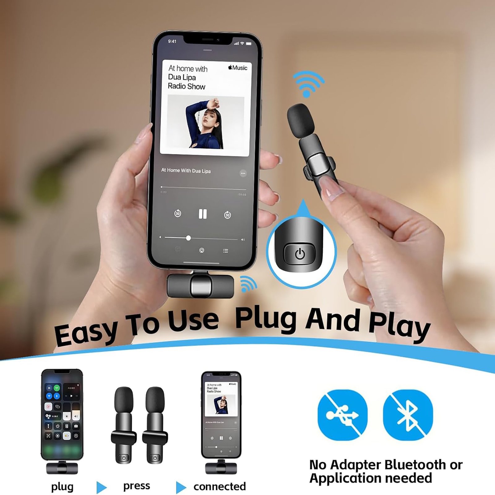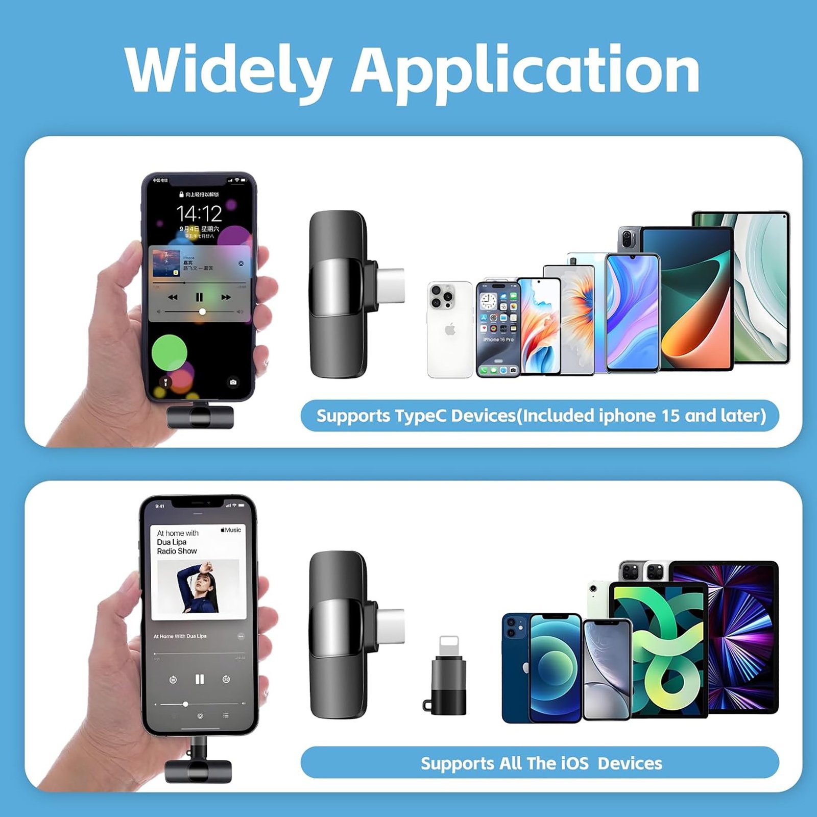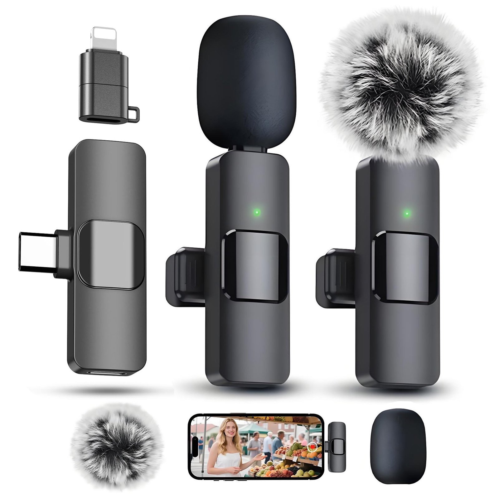 - [Universal Device Compatibility]The upgraded clip-on mic comes with a USB-C connector and charging cable, making it perfect for:• Android smartphones• lightning Phone series (all models)• Laptops & tablets